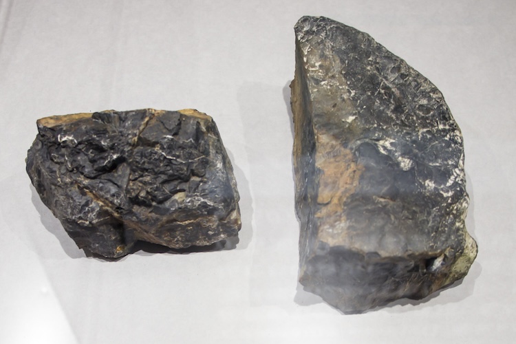 逆によくこんなにきれいに残っていたなと感心するような小さな生き物の化石もあります。化石の保存状態は堆積物の粒の細かさやどのくらいの時間をかけて積もったかに左右されるそう。また、生き物が死んだ後、海の中で炭素をきっかけに炭酸カルシウムが集まりコンクリーションと呼ばれる塊ができることもあり、この中には保存状態のよい化石が入っていることが多いようです。会場内にもコンクリーションの中にある化石がいくつか展示されているので、ぜひ探してみて!