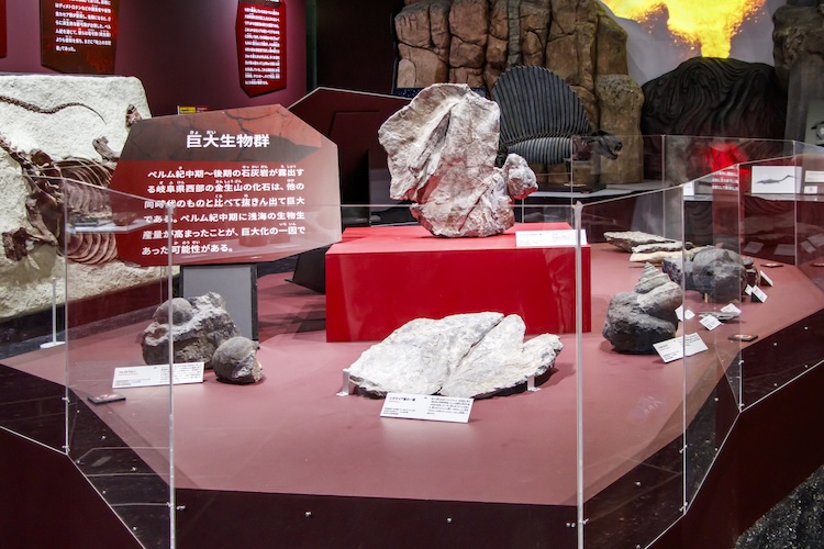 ▲このコーナーのなかに岐阜県で採れた化石が!