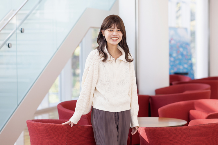 羽柴 食べることが好きで、小学生のころから料理人になりたいと思っていましたが、高校生のころにコロナ禍を経験して、食から人々の健康を支える仕事に就きたいと思うようになりました。管理栄養士の資格を取得できる大学は女子学生が多いことがほとんどなのが心配でしたが、オープンキャンパスに参加したときに、この大学の雰囲気なら大丈夫だと感じて、名古屋学芸大学への進学を決めました。