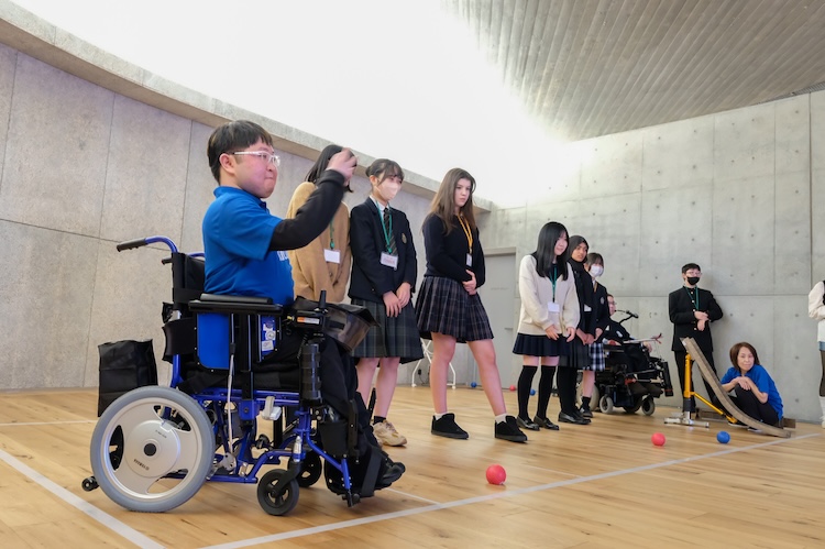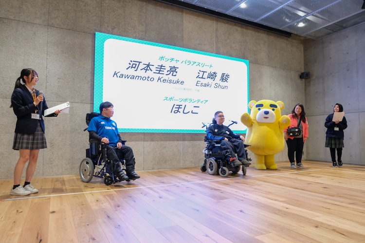 お話を聞いたあとは、選手とともにボッチャに挑戦!