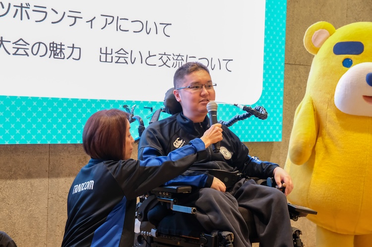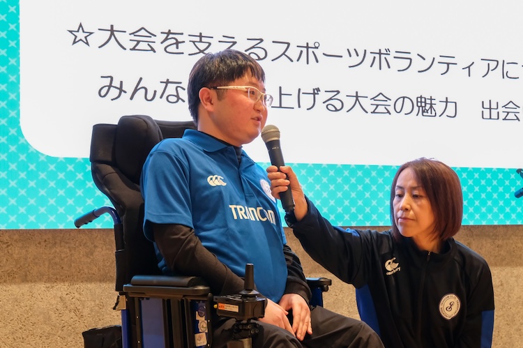 まずは河本選手、江崎選手、ほしこさんへインタビュー。選手のお二人に競技を始めたきっかけや競技の魅力、海外の大会での体験などを、ほしこさんからはスポーツボランティアの活動について、どんな活動をされているのかや活動の意義、楽しさについてお話していただきました。