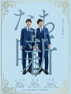 こうへい いい質問やなぁ。10年くらい前からこのタイトルで何回かやってるんですけど、僕の中では3つぐらい意味が掛かっていて。漫才って立って話すし、吉田たちの「たち」もかかってるし。それにごんべんの「話」にしてしまうとトークライブ感が出てしまうかなっていうので軽い感じを出したくて。一番気に入っているタイトルなので、タイトルに困ったら「たち噺」にしてますね。